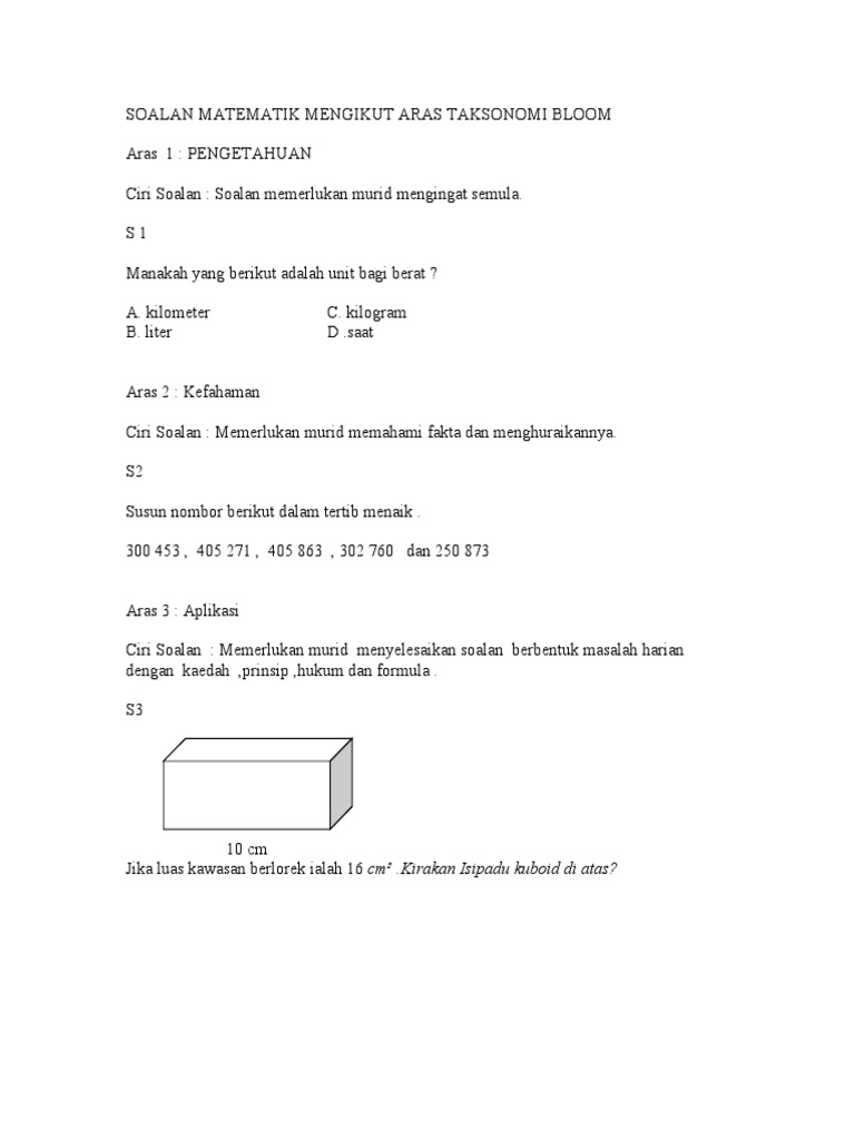 Bahan Untuk Diupload Soalan Matematik Megikut Aras Taksonomi Bloom