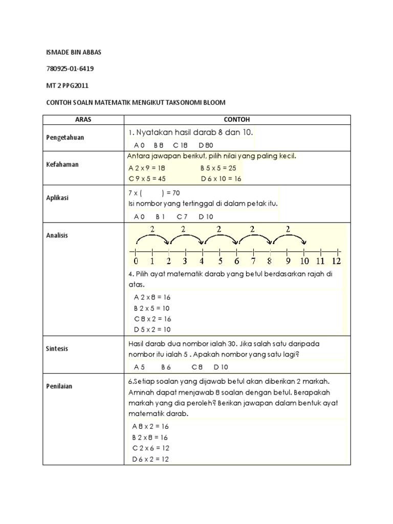 Soalan Matematik Aras Taxanomy Bloom Pdf