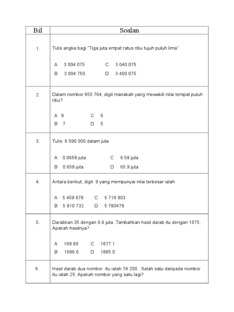 Contoh Soalan Matematik Aras Taksonomi Bloom